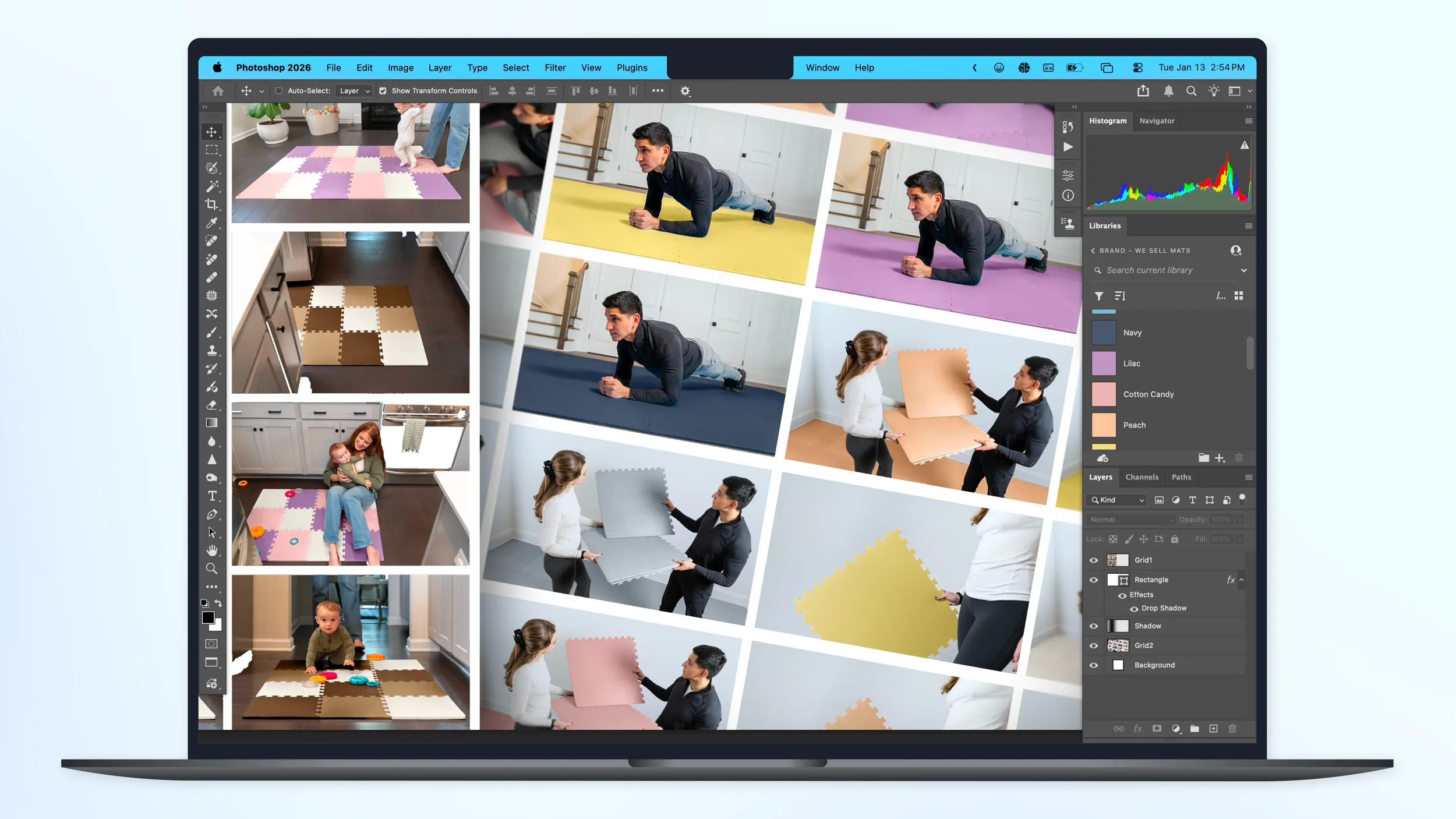 Photoshop-based color swapping turned one photoshoot into a full library of on-brand mat variations: